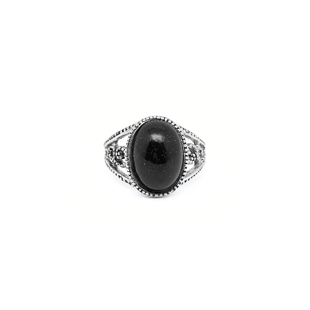 LโAnello Vintage Onice Nero in Argento, con montatura artigianale in Argento 925 e gemma Onice Nero cabochon da 10×14 mm, รจ un gioiello raffinato e senza tempo, perfetto per chi ama lโeleganza classica.