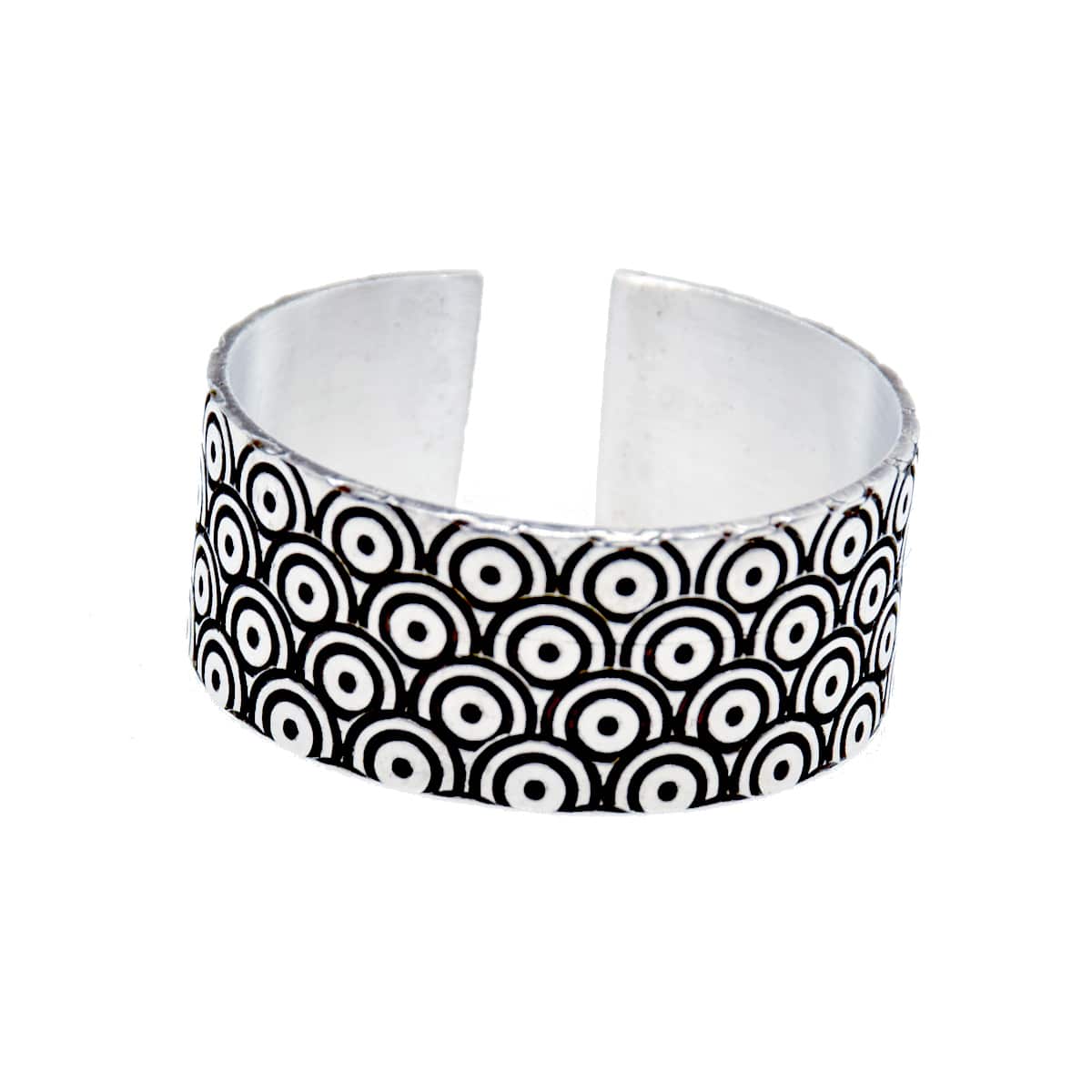 L’Anello Fascia Pavone Larga in Argento, con una texture di occhi di piume di pavone, è un gioiello unisex regolabile perfetto per ogni occasione. Scopri di più qui.