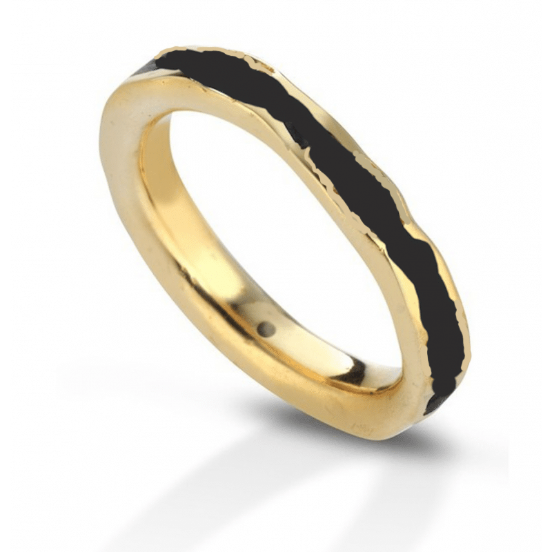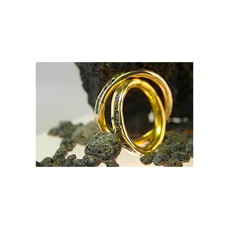 Di conseguenza, lโoro si fonde con le cavitร della lava, creando un profilo unico e irripetibile che rende ogni anello diverso dagli altri.