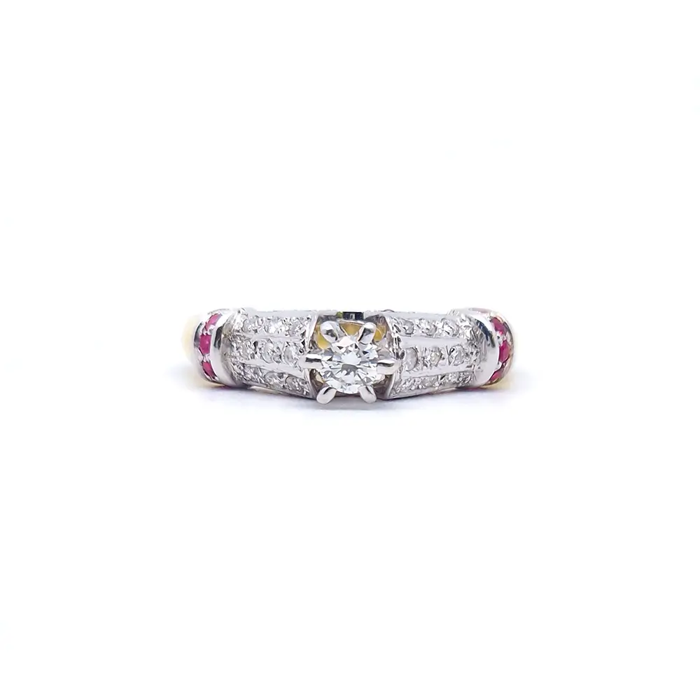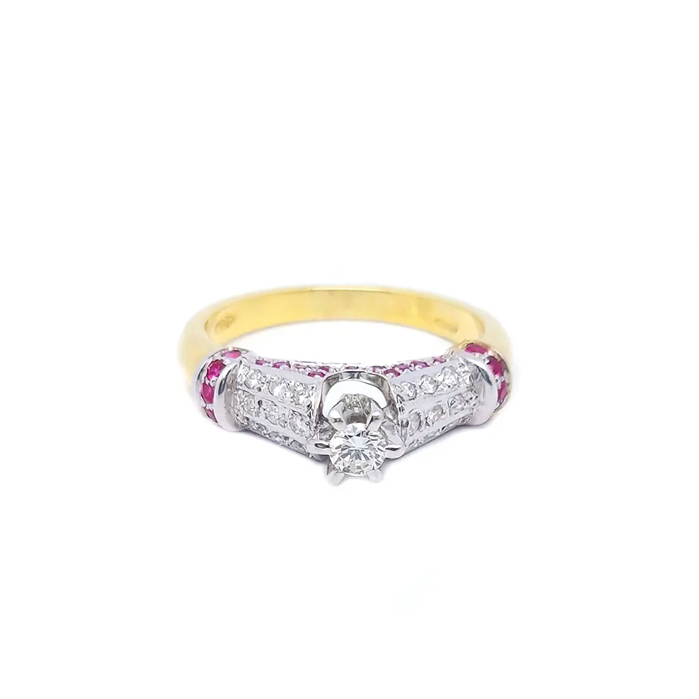 Anello Solitario Dafne con Diamanti e Rubini: Eleganza Vintage per un Legame Eterno