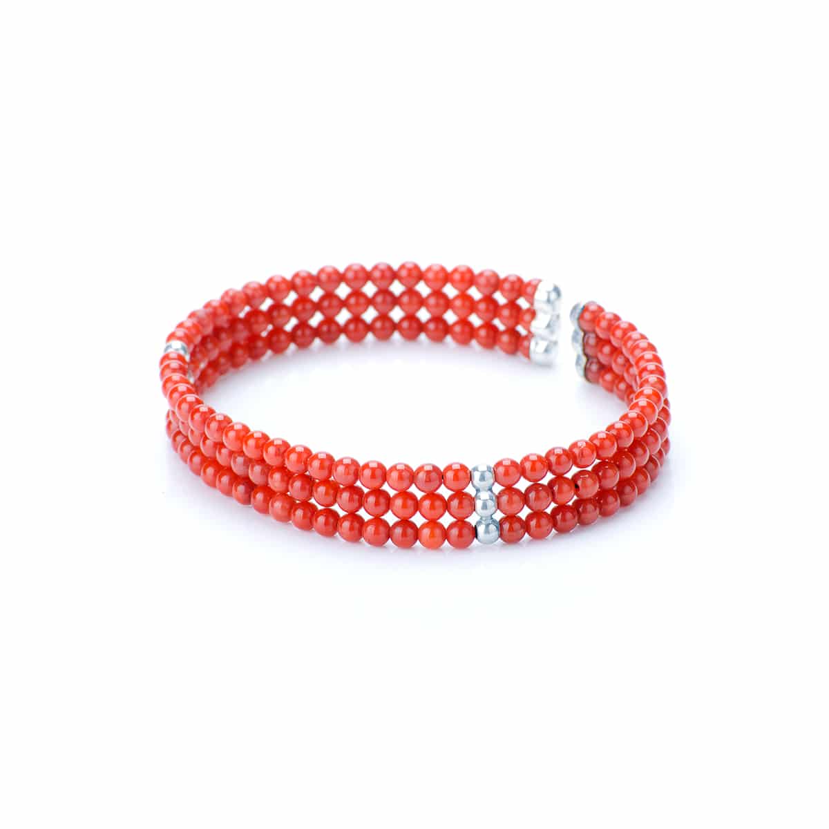 Il Bracciale è un modello semi-rigido composto da tre fili di graziose palline di Corallo Rosso del Mediterraneo da 3 mm alternate da altrettanto piccole sfere di luminoso Argento 925. Il gioiello non necessita di una chiusura risultando dunque facilmente indossabile qualsiasi siano le propire necessità. Il Bracciale Corallo Rosso Semirigido in Argento è un modello estremamente pratico da indossare che conserva uno stile leggero, classico e raffinato.