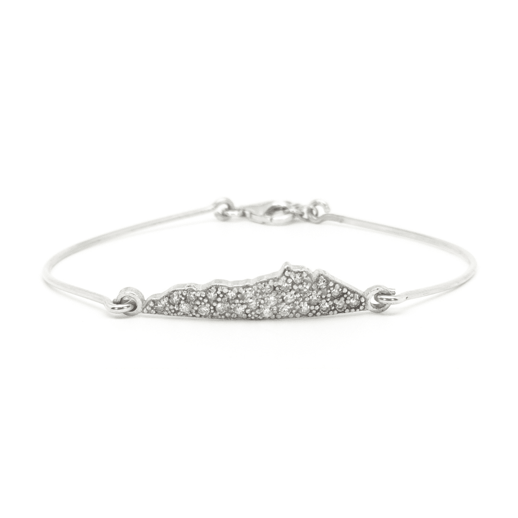 Il Bracciale Profilo Divino Pavé Bianco con Filo Rigido, in argento 925 con cubic zirconia bianchi incastonati a mano, celebra la magia e l’eleganza del Monte Circeo.