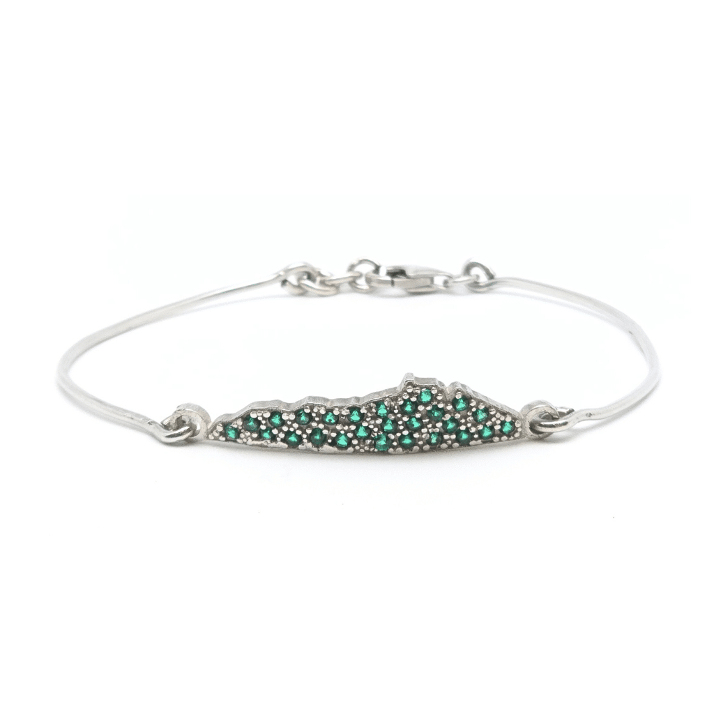 Il Bracciale Profilo Divino Pavé Verde con Filo Rigido, in argento 925 con cubic zirconia verdi incastonati a mano, celebra il fascino e la magia del Monte Circeo.