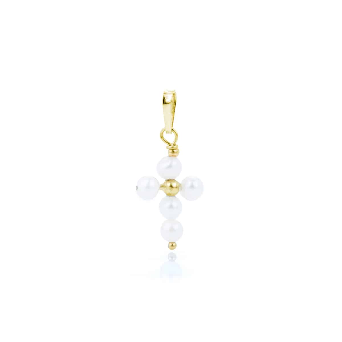 Ciondolo Croce con Perle Bianche in Oro 18 kt mis. Piccolo
