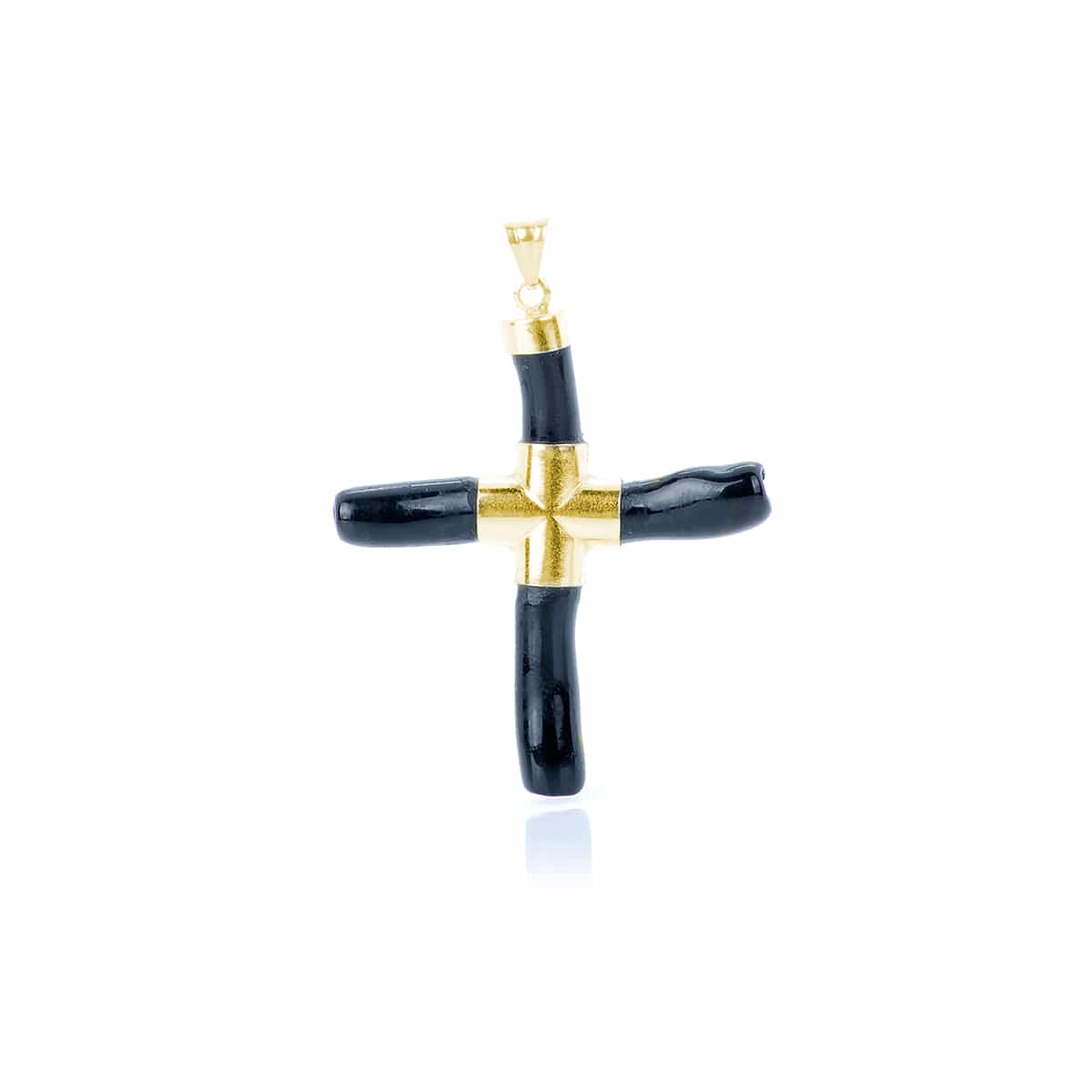 Ciondolo Croce in Corallo Nero Gorgoniano in Oro 18 kt