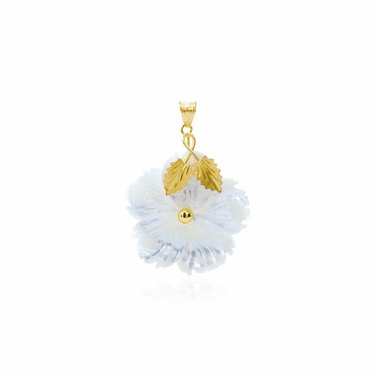 Il Ciondolo è realizzato interamente in Oro 18 kt e Madreperla Bianca incisa a forma di Fiore. Un ciondolo unico che unisce l’arte dei nostri maestri incisori e la bellezza della Natura.