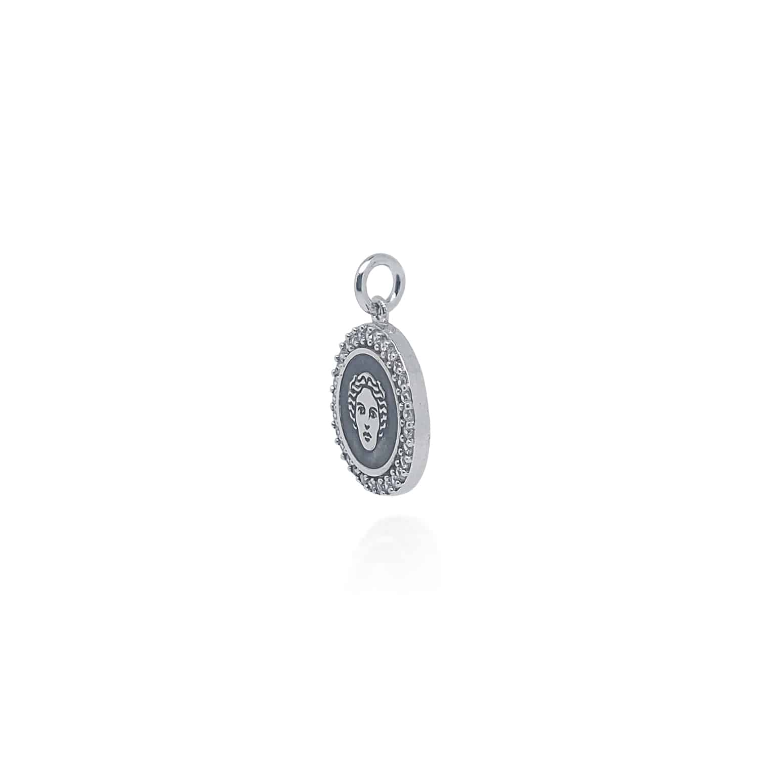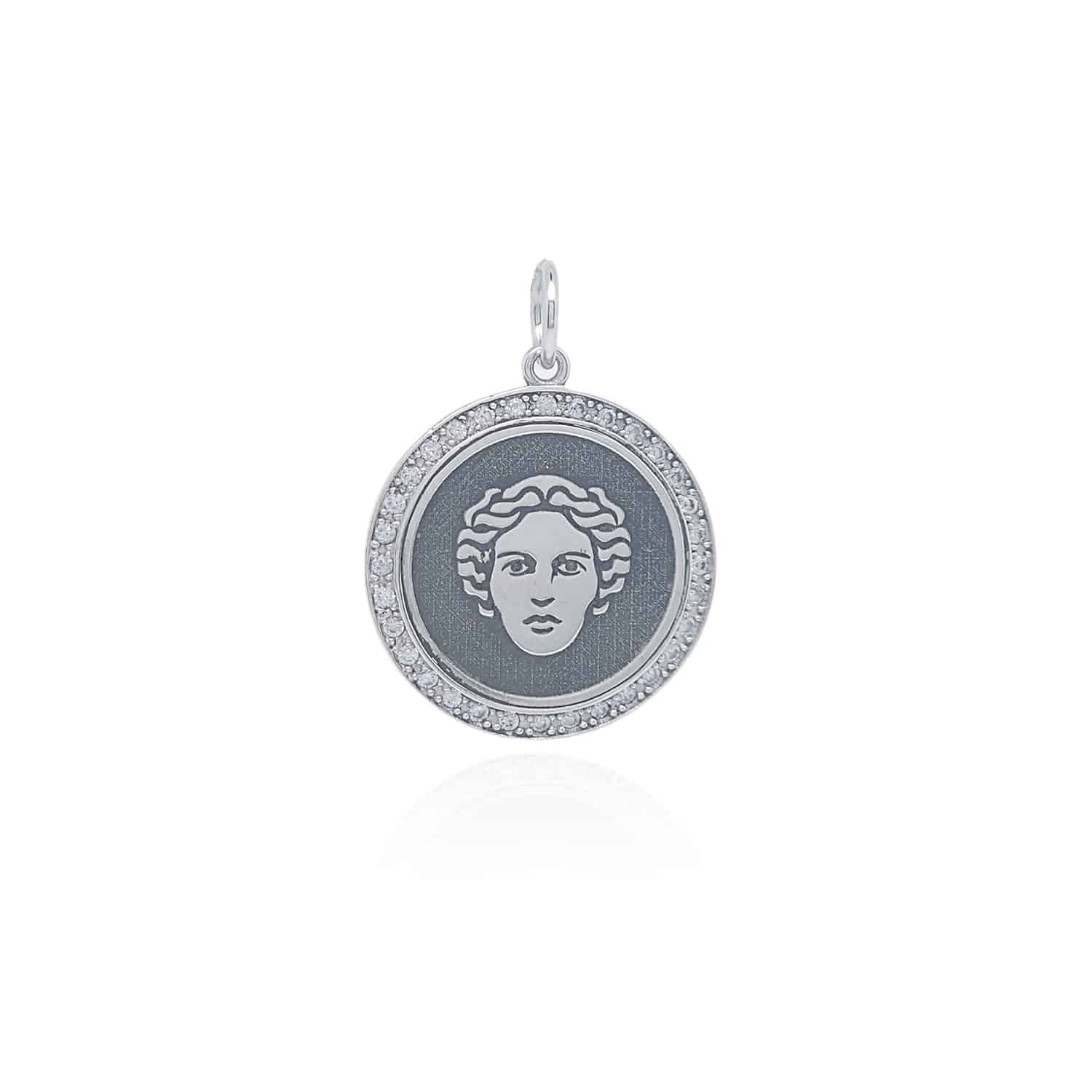 Il Ciondolo Maga Circe Pavé in Argento 925, Disponibile in differenti dimensioni della medaglia.