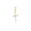 Il Ciondolo a forma di Croce è realizzato con Pallini di 4 mm in Corallo Rosa del Giappone ed è montato in Oro 18 kt. Un gioiello che racchiude originaità, arte e spiritualità.