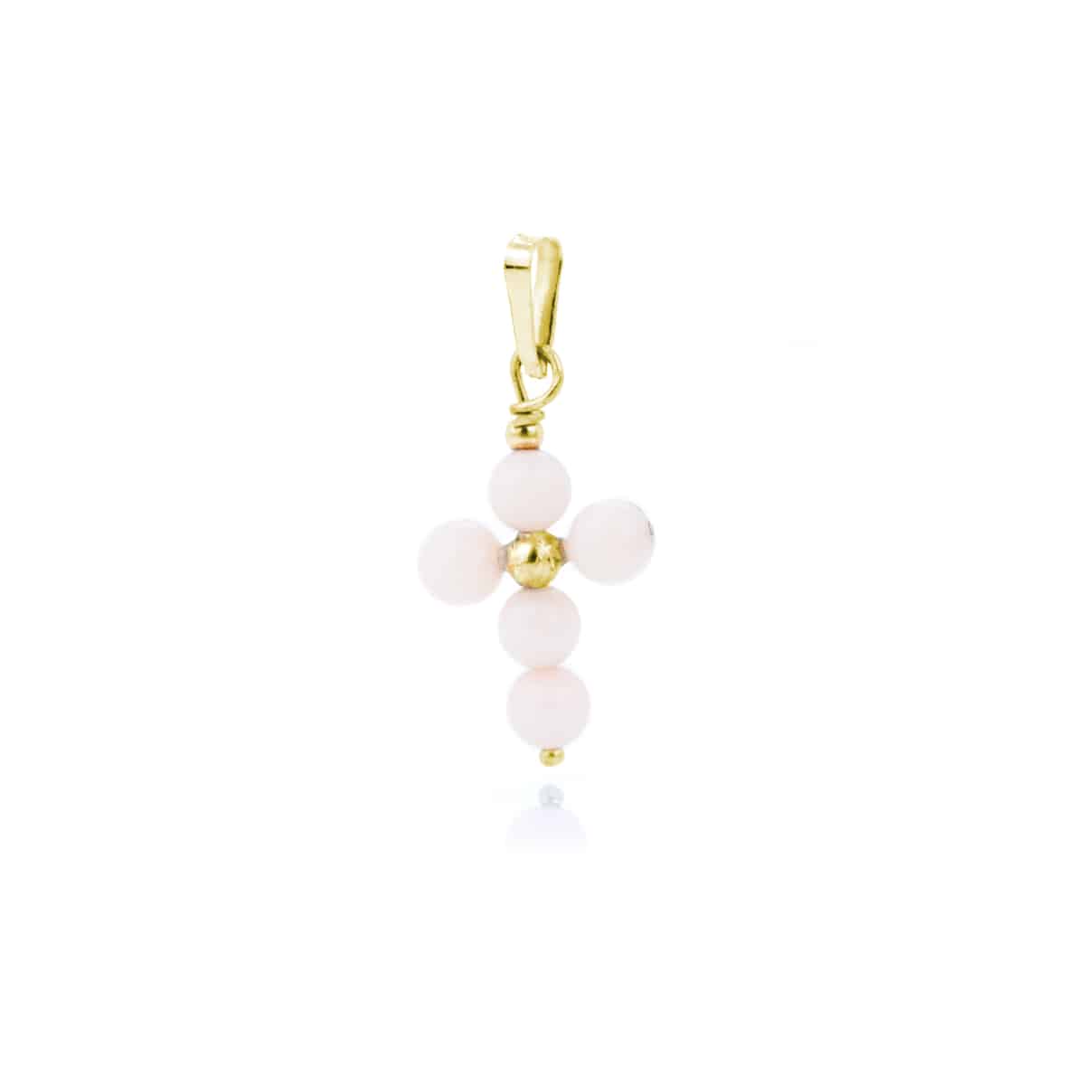 Croce in Corallo Rosa a Pallini e Oro 18 kt mis. Piccolo