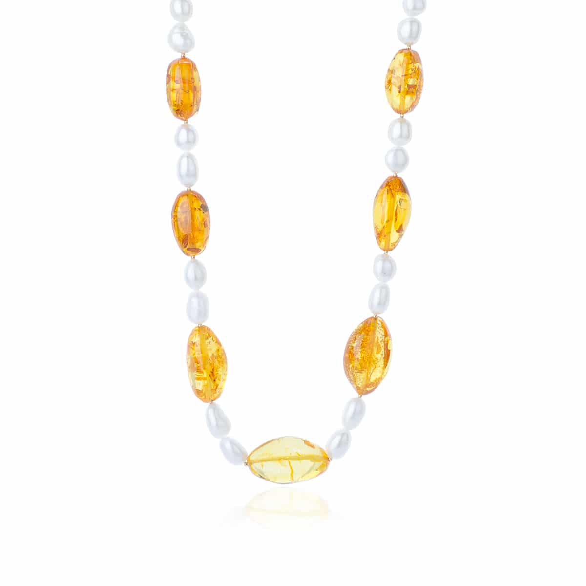 Collan di Perle Bianche d’Acqua Dolce con Ambra del Baltico