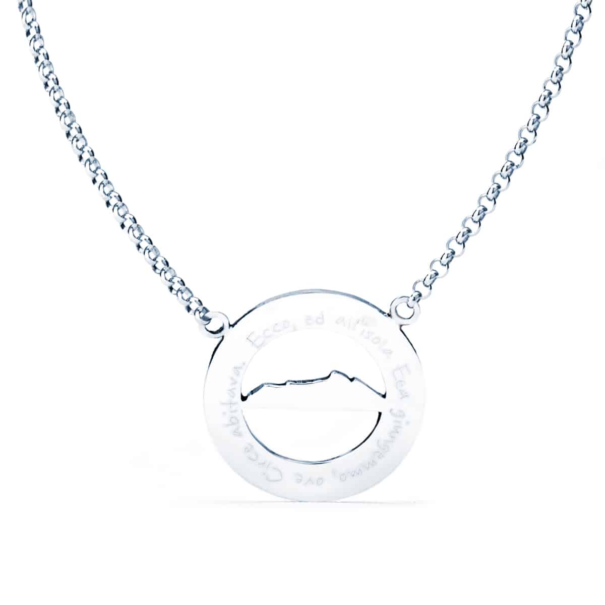 La Collana Odissea in Argento è un gioiello artigianale con un cerchio traforato a mano raffigurante il profilo del Monte Circeo. Incisa con un verso dall’Odissea, questa collana cattura la magia e la storia del Circeo. Un accessorio perfetto per chi ama la bellezza autentica e le leggende senza tempo.