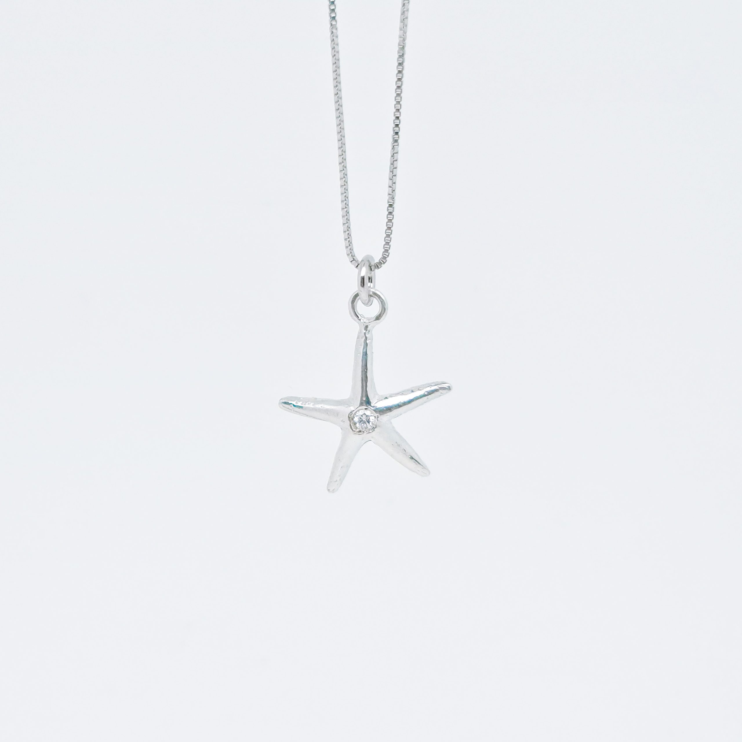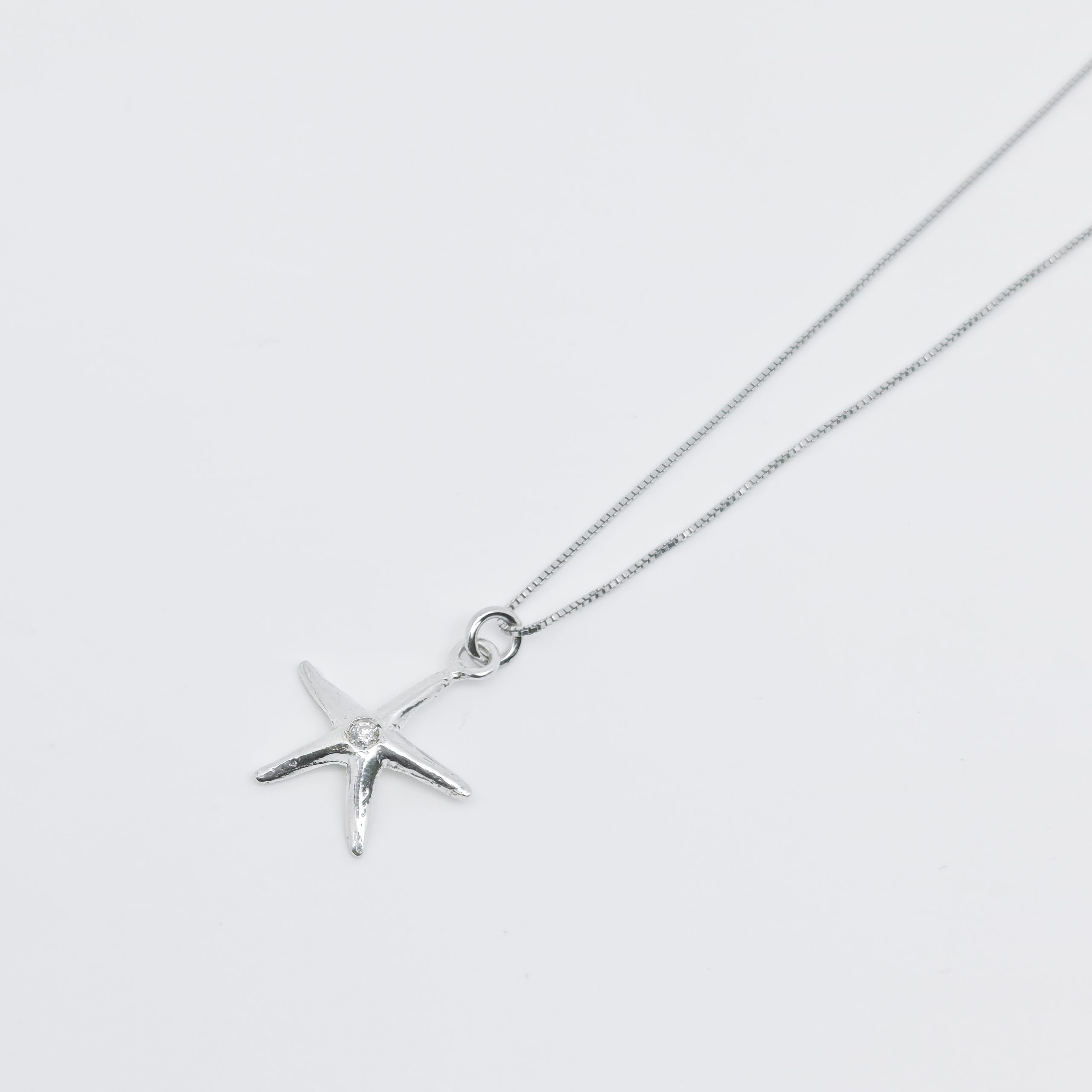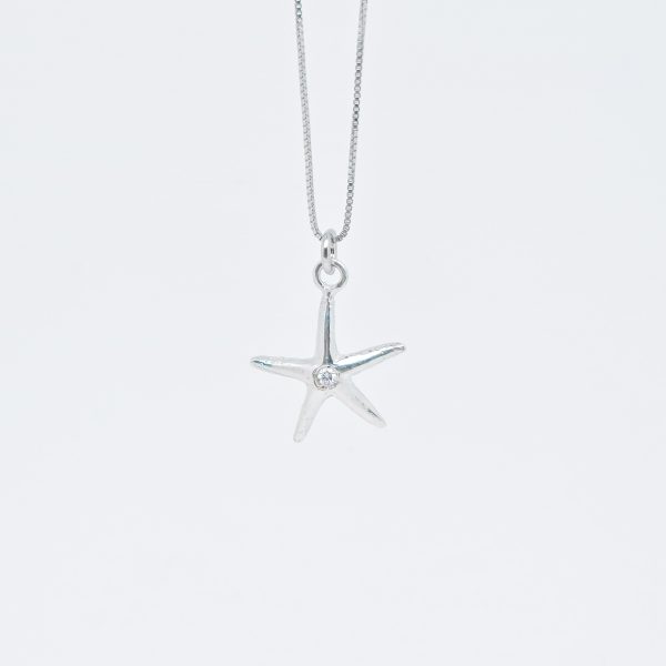 La Collana Stella Seta Diamante della Collezione Stelle del Circeo รจ un pezzo unico in argento con una stella marina di 16 mm. Incastonata con un diamante, rappresenta un gioiello raffinato e simbolico, perfetto per chi desidera eleganza e unicitร .