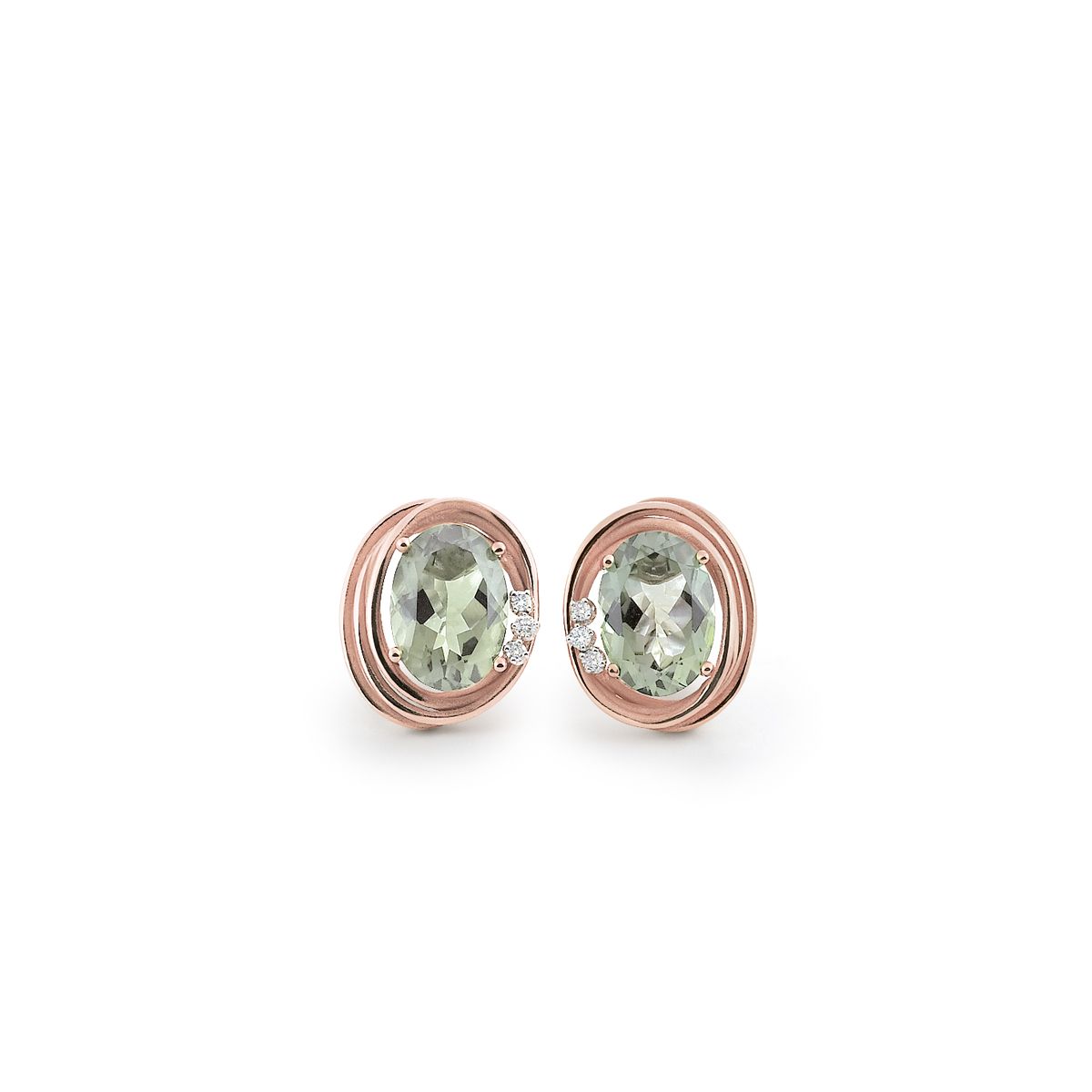 Oro Rosa Champagne 18Kt con Diamanti e Prasiolite.