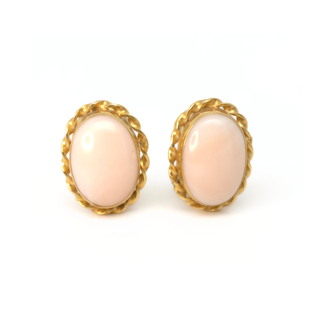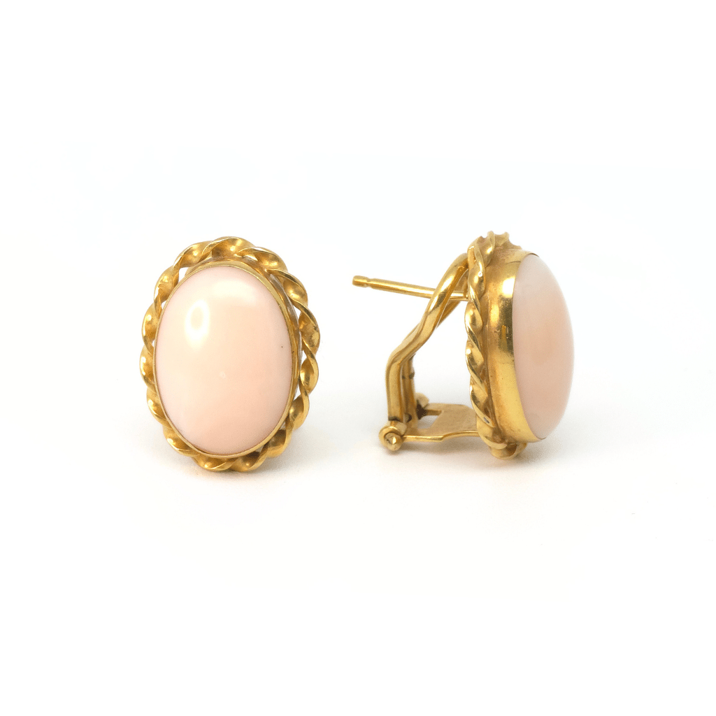 L’elemento distintivo di questi orecchini è la cordella in oro giallo 18 kt, che incornicia il Cabochon ovale con un effetto di movimento e luminosità. Questo dettaglio dorato enfatizza la lucentezza del corallo e conferisce al gioiello un’eleganza senza tempo.