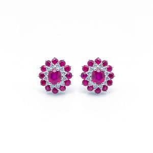 Orecchini Rubino con Doppio Giro di Diamanti | Eliade